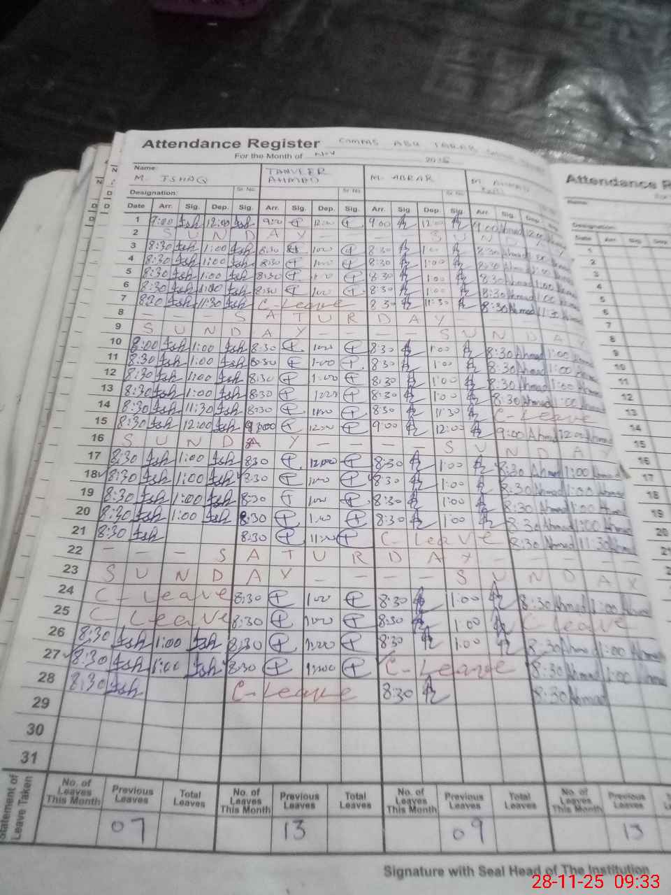 | Remarks (Use Separate Page if Required): 1 32 students difference roznamcha and head count | |||||