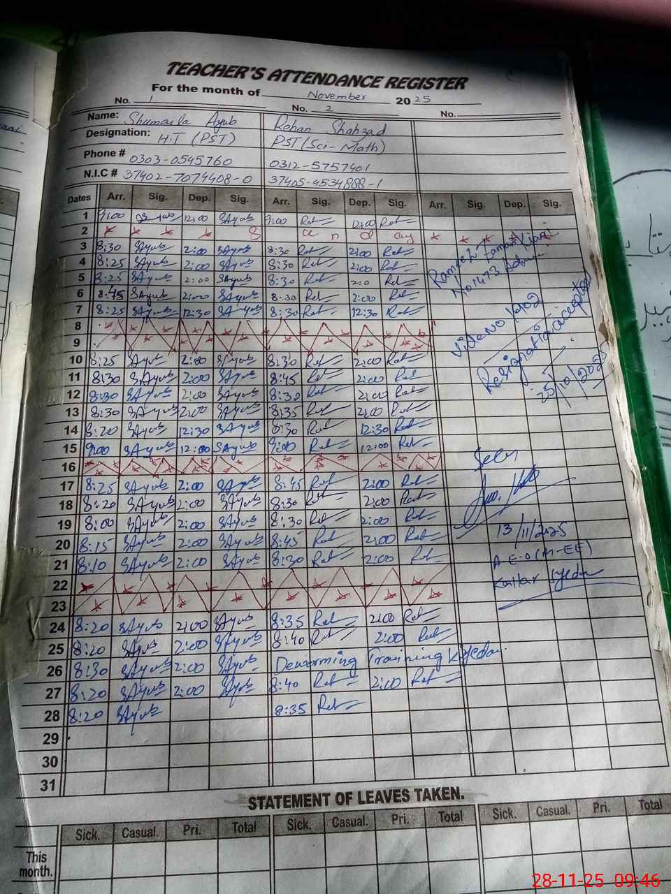 | Name: Sh**** Ay**** Designation: (School Headmaster's/Headmistress's) PST Phone/Cell Number: 03**** |