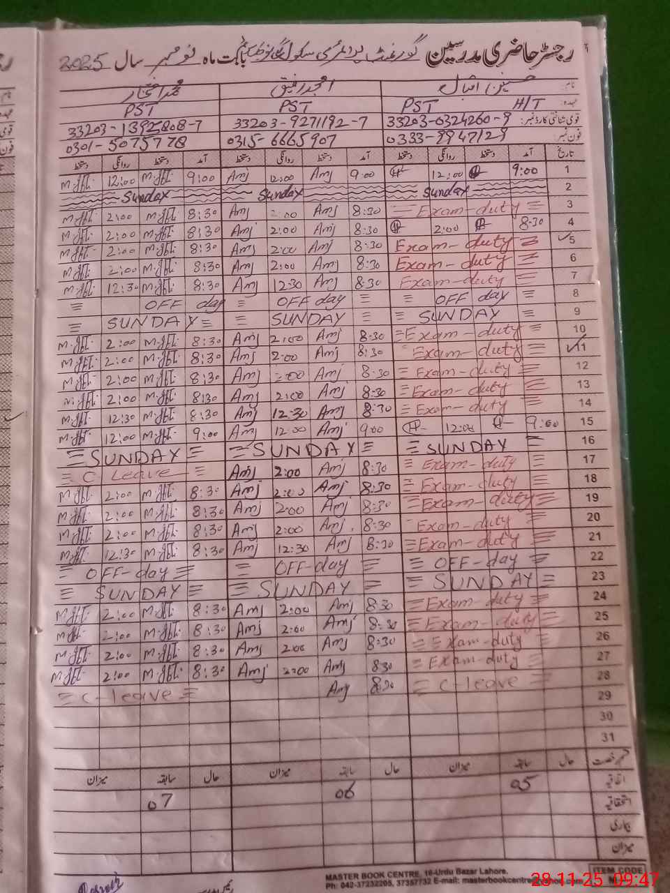 | Name: Ha**** Iq**** Designation: (School Headmaster's/Headmistress's) PST Phone/Cell Number: 03**** |