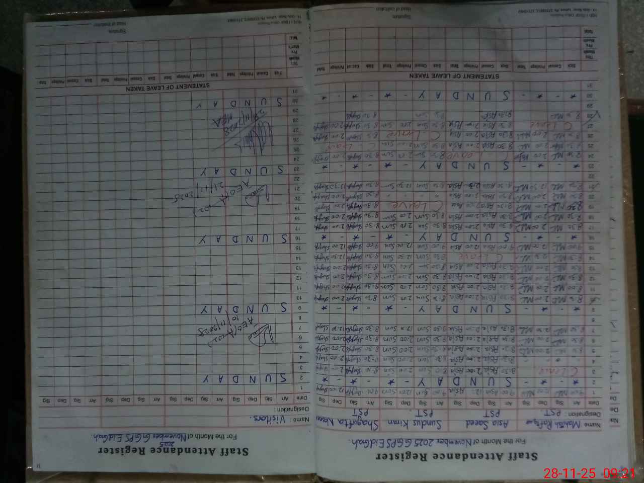 | CNIC | Full Name | Designation | R/C | Absence During Last Calender Month |