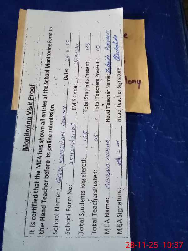 | EMIS Code: 38110343 | Name of School: GGPS CHRISTIAN COLONY | |||