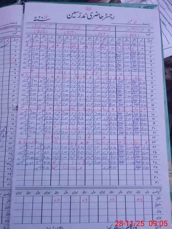 | CNIC | Full Name | Designation | R/C | Absence During Last Calender Month |