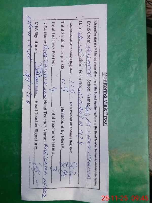 | Attendance Register | Head Teacher | MEA with School | Visit Proof |
