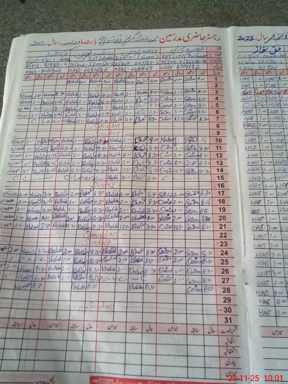 | Name: Qa**** Ra**** Designation: (School Headmaster's/Headmistress's) S.S.T.(SC) Phone/Cell Number: 03**** |