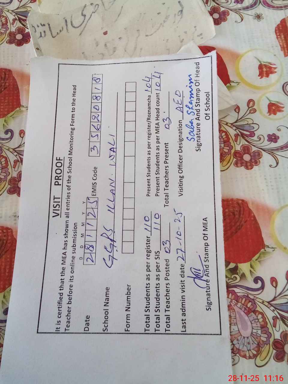 | EMIS Code: 35620818 | Name of School: GGPS MODEL ILLANWALI KARIAL | |||