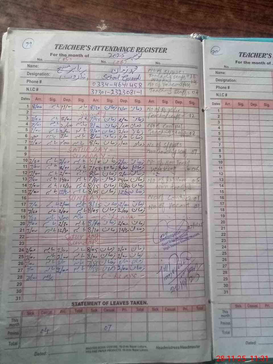 | Name: Qa**** Mu**** Ra**** Designation: (School Headmaster's/Headmistress's) HEADMASTER Phone/Cell Number: 03**** |