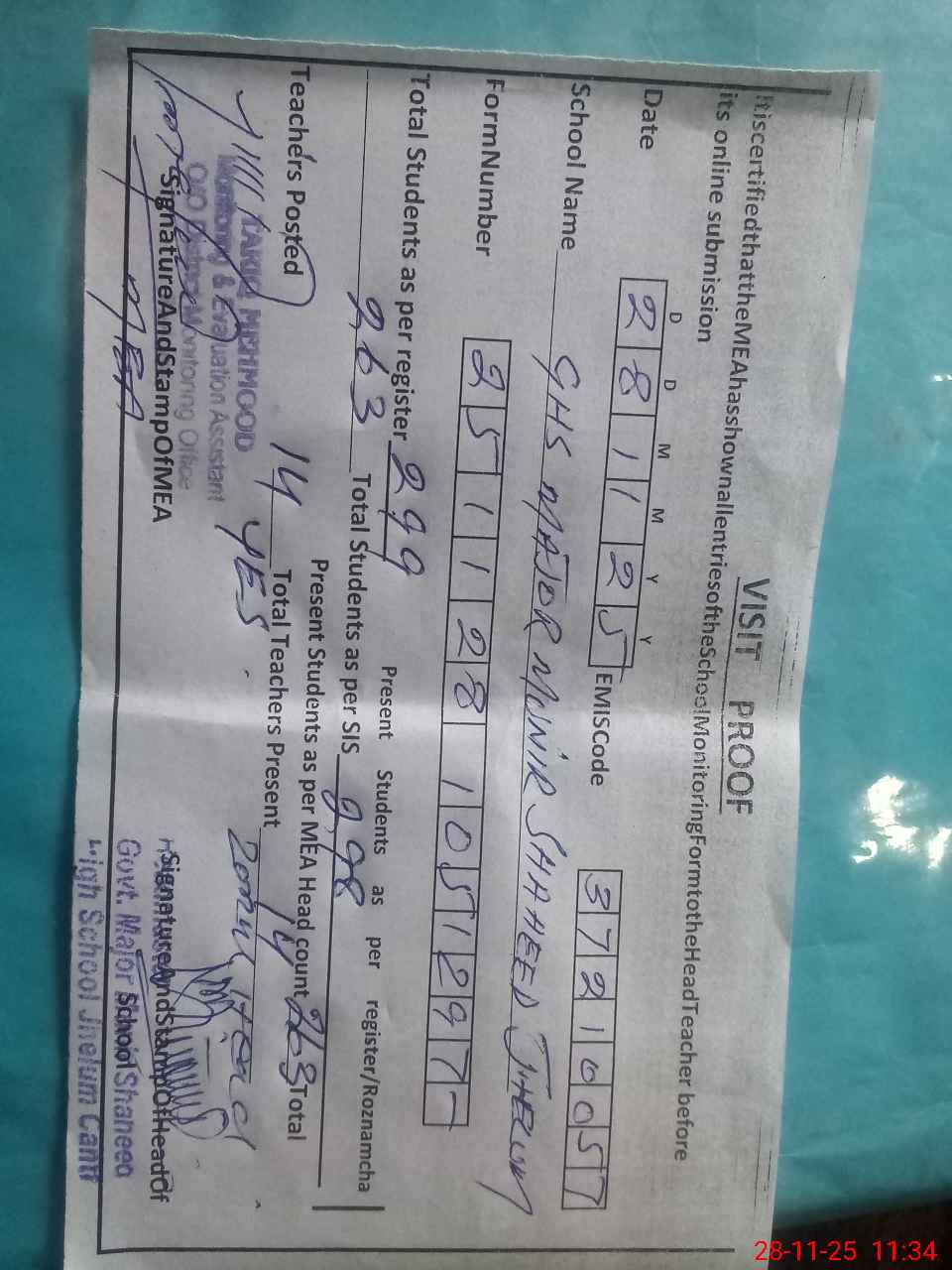 | EMIS Code: 37210057 | Name of School: GHS MAJOR MUNEER SHAHEED JHELUM CANTT | |||