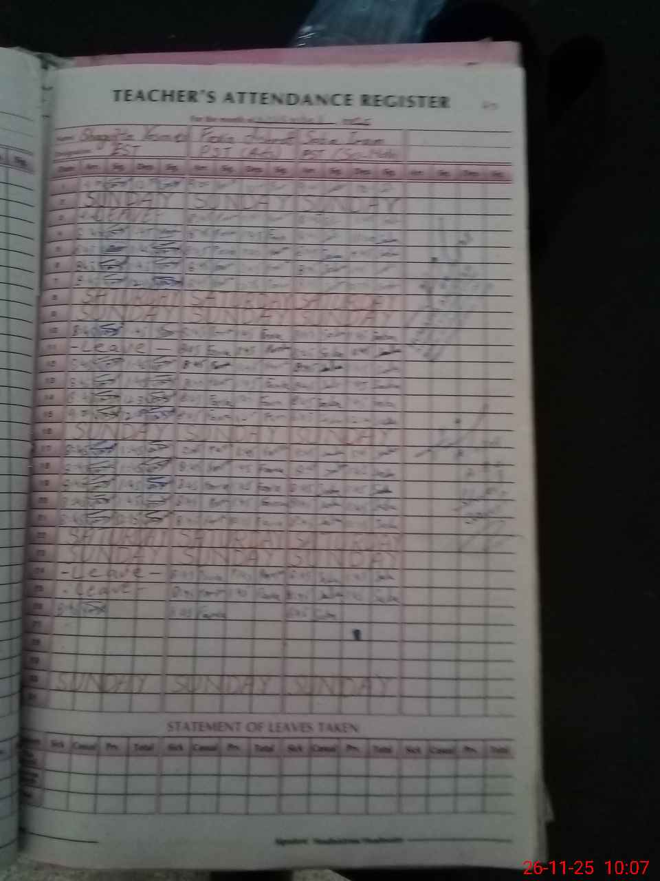 | Leave | Duty | Absent | Maternity | Medical | Ex- Pak |