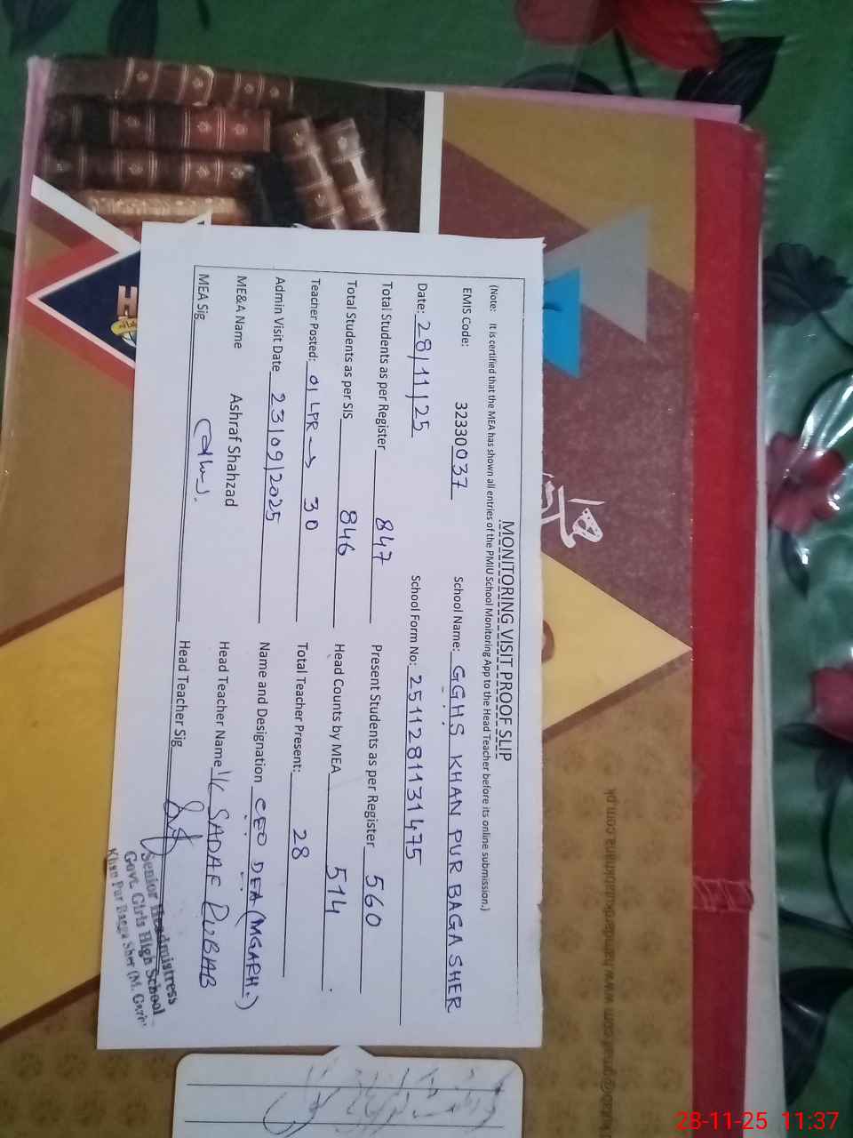 | EMIS Code: 32330037 | Name of School: GGHS KHANPUR BAGGA SHER | |||