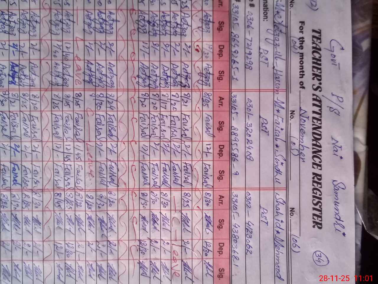 | Name: MU**** SA**** SA**** Designation: (School Headmaster's/Headmistress's) PST Phone/Cell Number: 03**** |