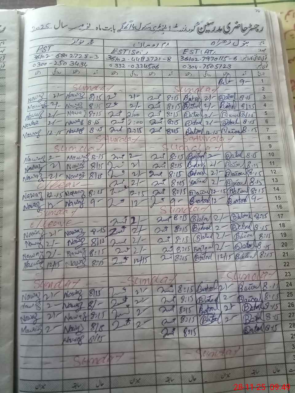 | Name: QA**** BA**** Designation: (School Headmaster's/Headmistress's) Est Phone/Cell Number: 03**** |
