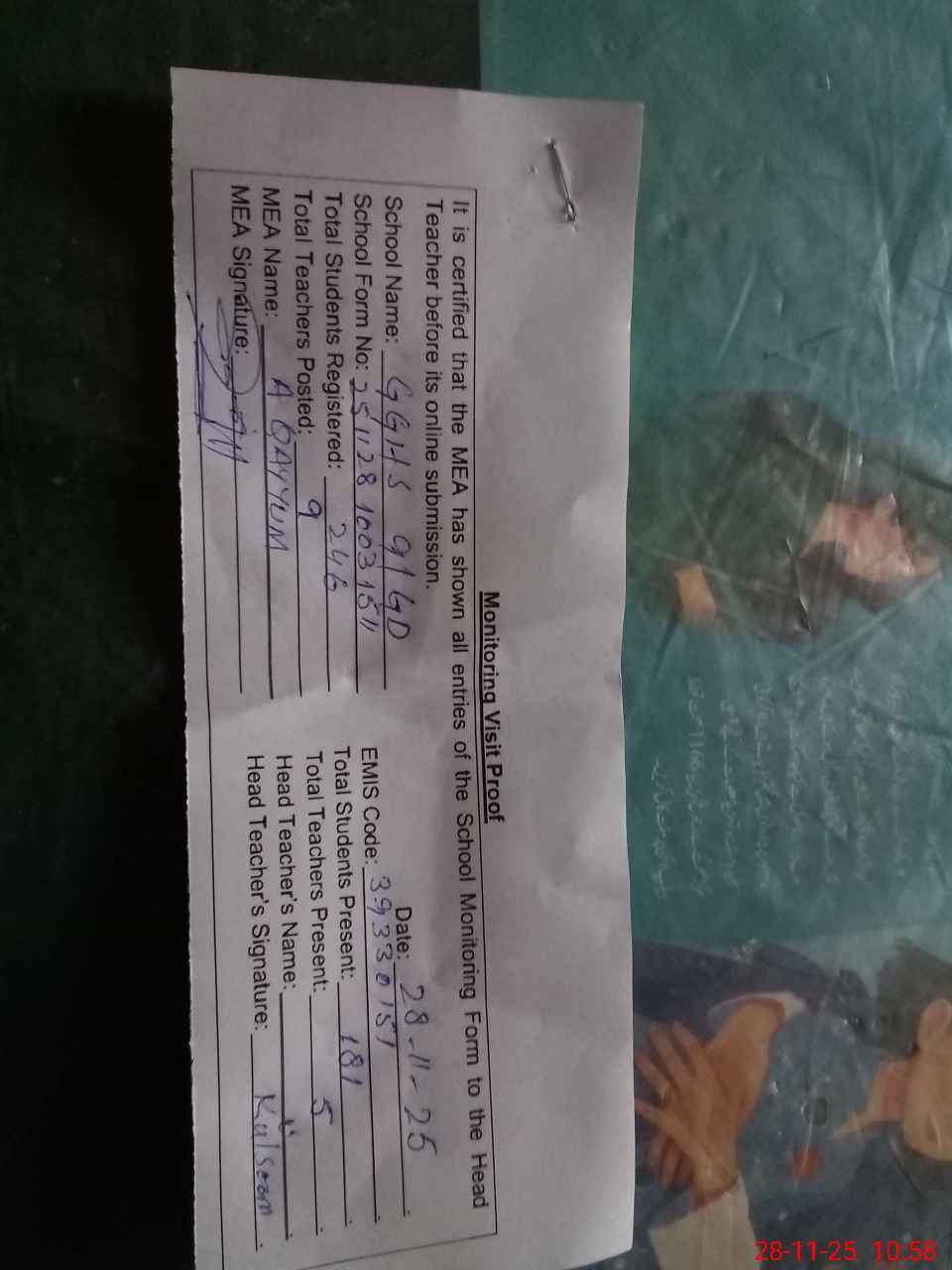 | EMIS Code: 39330151 | Name of School: GGHS CHAK NO.9/GD | |||