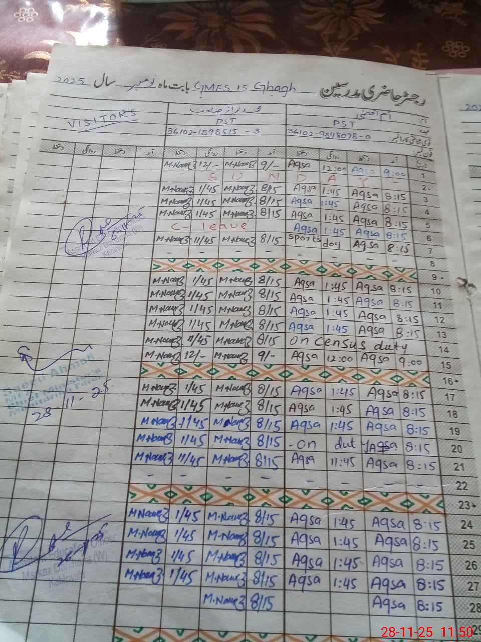| Name: Um**** Aq**** Designation: (School Headmaster's/Headmistress's) ESE(ARTS) Phone/Cell Number: 03**** |