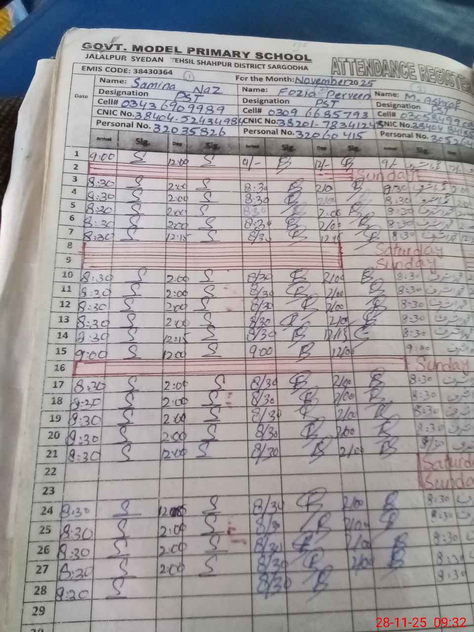 | Name: SA**** NA**** Designation: (School Headmaster's/Headmistress's) PST Phone/Cell Number: 03**** |