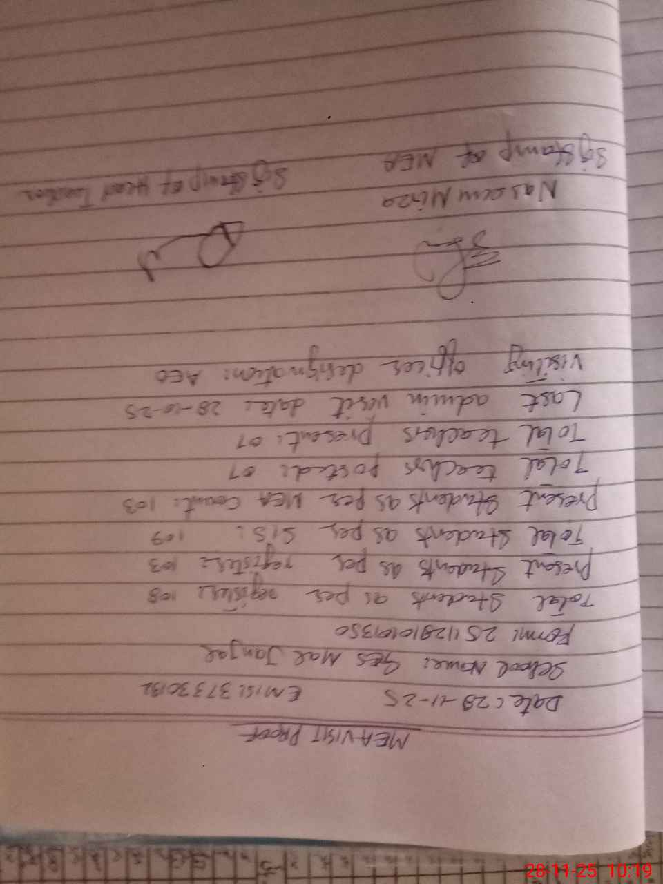 | Certified that this School was Inspected by the Undersigned MEA/DMO Today and the Information Stated Above is as Per Record. | |||||