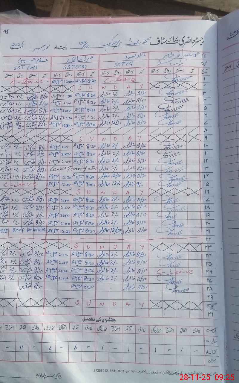 | 31**** | Mu**** Al**** | Regular | 0 | 0 | 31 | 0 | 0 | 0 | 0 | 0 | 0 | Absent (Un-Authorized) | |