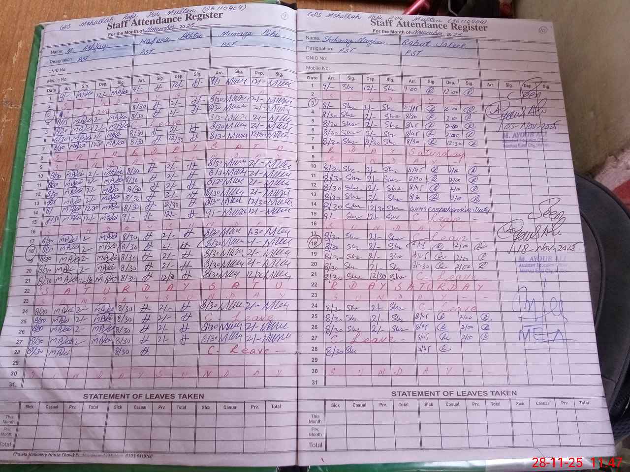 | Monitoring Date: 28-11-2025 | Start Time: 28-11-2025 11:20 AM | End Time: 28-11-2025 12:12 PM | Name of MEA: Mu**** Ma**** | |