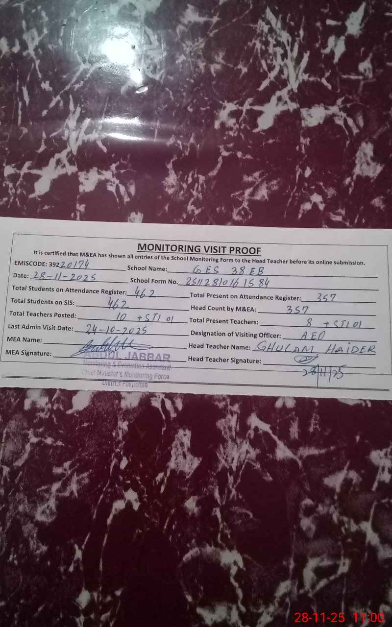 | EMIS Code: 39220174 | Name of School: GES 38 EB | |||