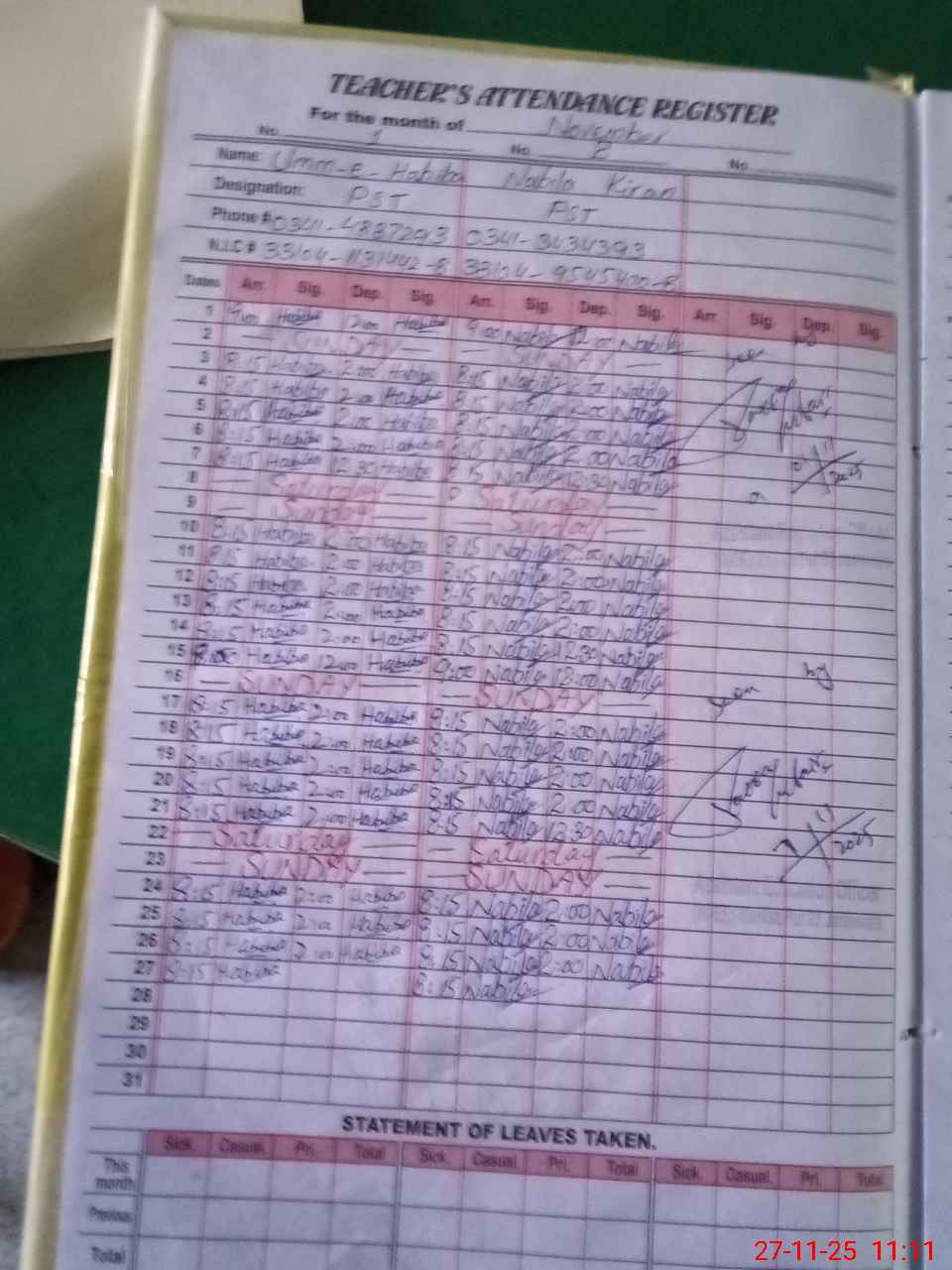 | Name: Um**** Ha**** Designation: (School Headmaster's/Headmistress's) PST Phone/Cell Number: 03**** |