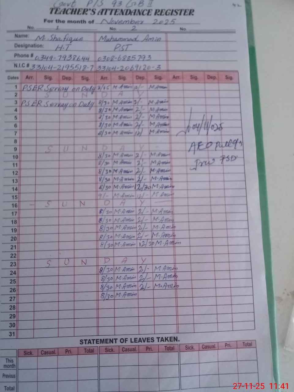 | Name: MU**** SH**** Designation: (School Headmaster's/Headmistress's) PST Phone/Cell Number: 03**** |