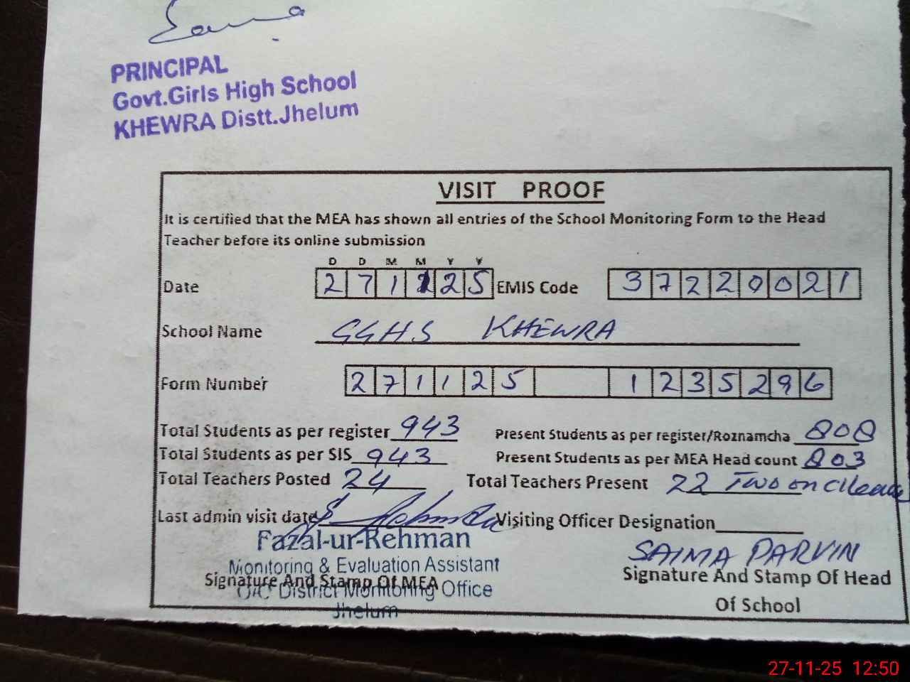 | EMIS Code: 37220021 | Name of School: GGHS KHEWRA | |||