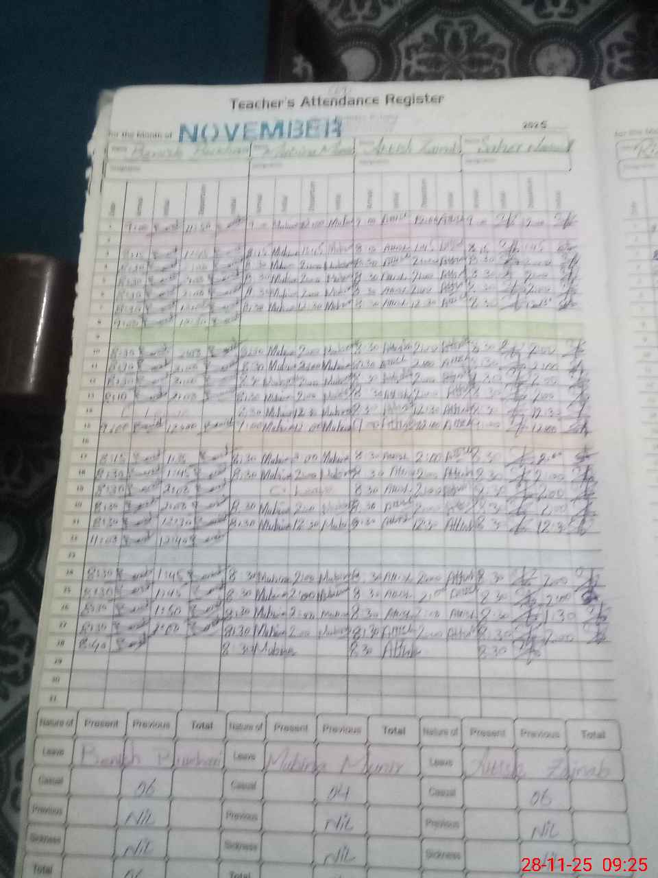 | Leave | Duty | Absent | Maternity | Medical | Ex- Pak |