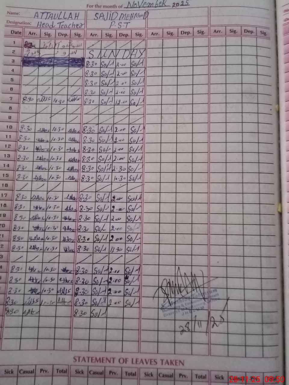 | Name: At**** UAL**** Designation: (School Headmaster's/Headmistress's) HEADMASTER Phone/Cell Number: 03**** |