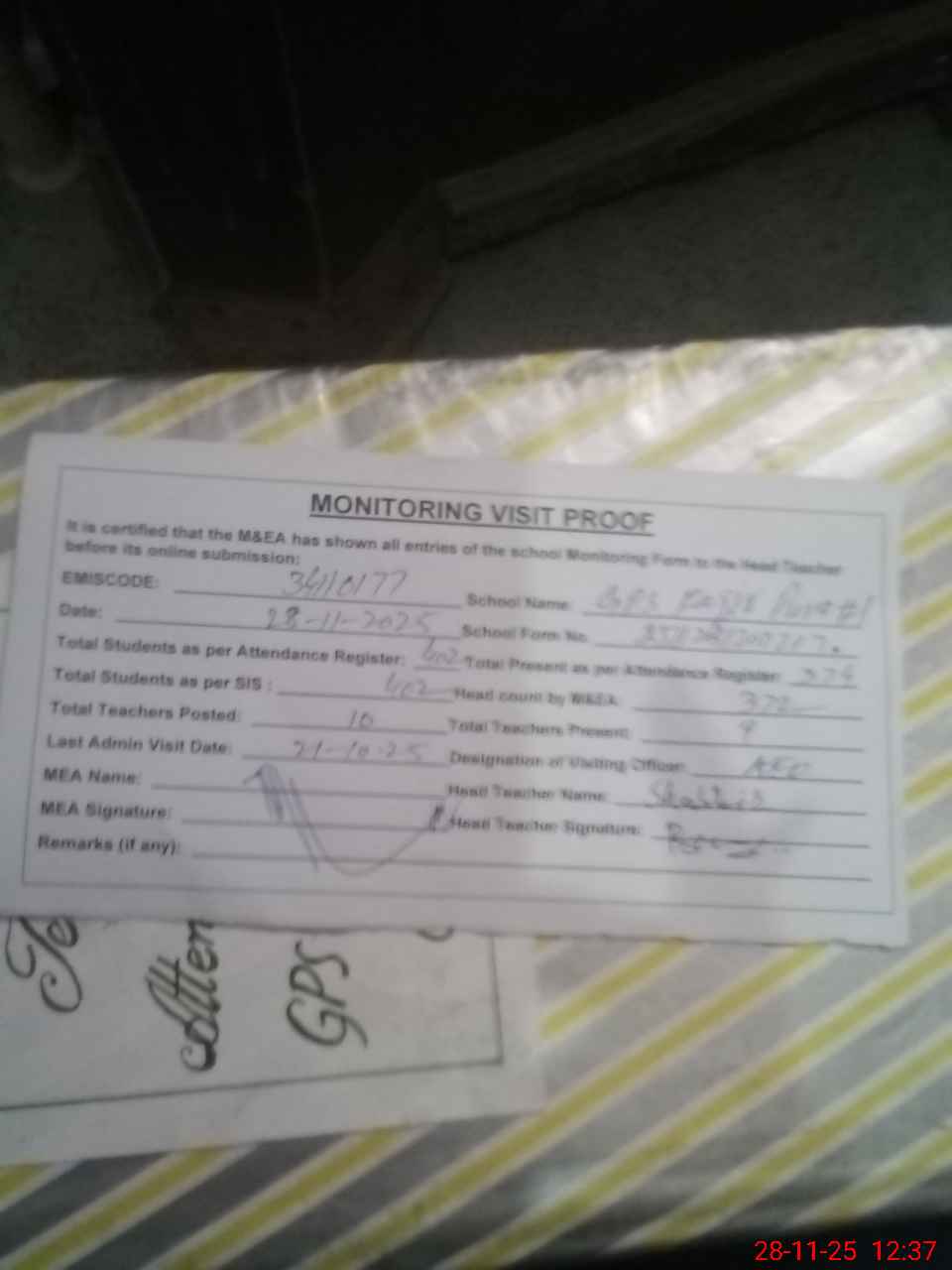 | EMIS Code: 34110177 | Name of School: GPS FAQIR PURA NO.1 | |||