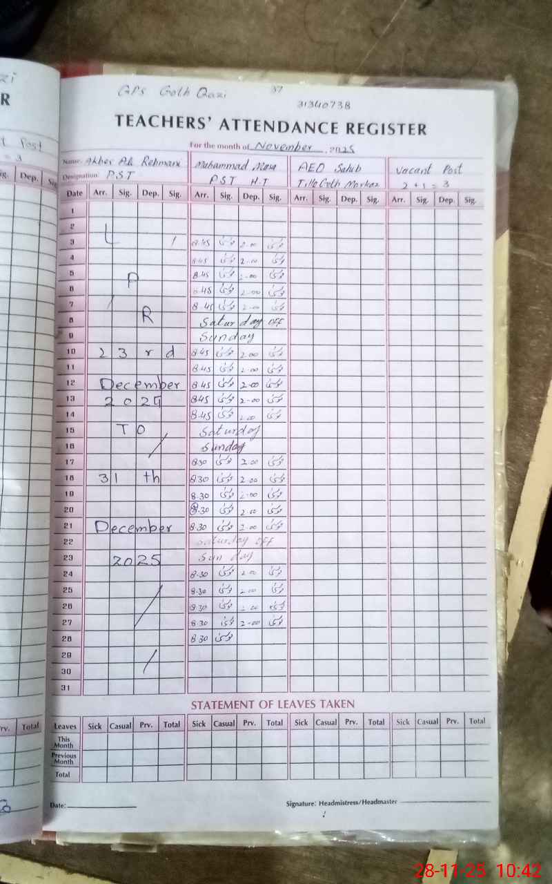 | Attendance Register | Head Teacher | MEA with School | Visit Proof |