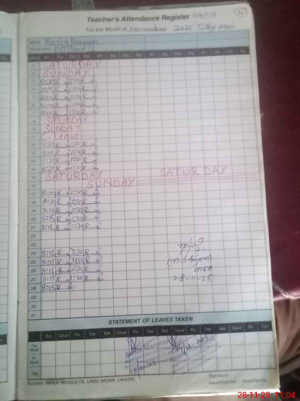 | Name: RA**** PE**** Designation: (School Headmaster's/Headmistress's) PST Phone/Cell Number: 03**** |