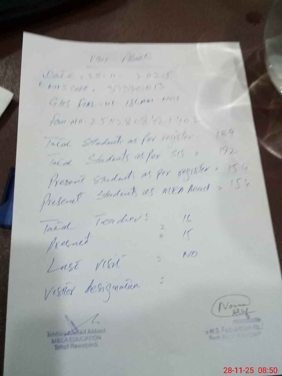 | Monitoring Date: 28-11-2025 | Start Time: 28-11-2025 08:18 AM | End Time: 28-11-2025 08:50 AM | Name of MEA: Is**** Ah**** | |