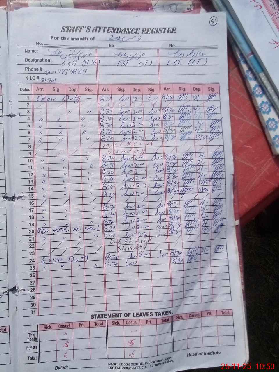 | 31**** | Gh**** Ya**** | ESE Arts | Regular | 0 | 0 | 0 | 0 | 0 | 0 | 0 | 0 | 0 | Exam Duty |