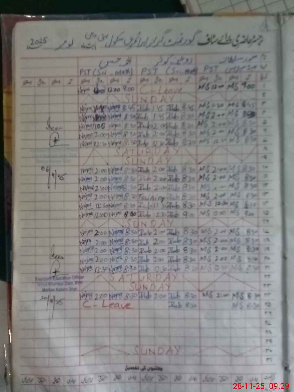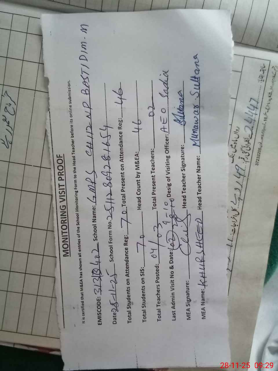 | Name: MU**** SU**** Designation: (School Headmaster's/Headmistress's) PST Phone/Cell Number: 03**** |