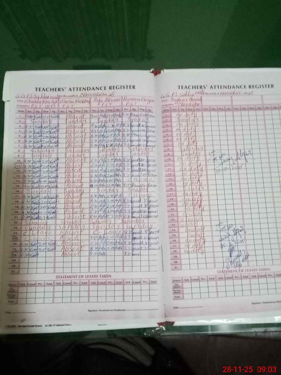 | Leave | Duty | Absent | Maternity | Medical | Ex- Pak |