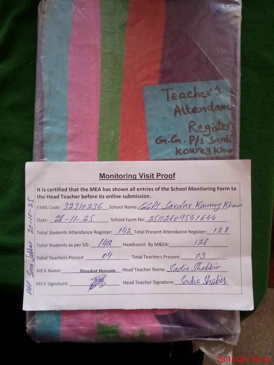 | EMIS Code: 32310236 | Name of School: GGPS SARDAR KOURY KHAN | |||
