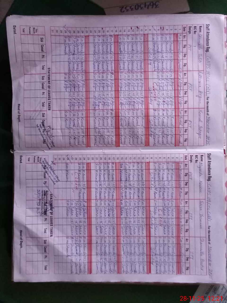 | CNIC | Full Name | Designation | R/C | Absence During Last Calender Month |