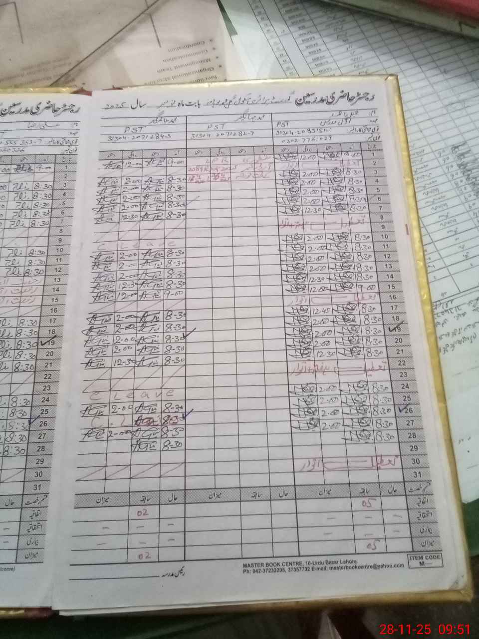 | CNIC | Full Name | Designation | R/C | Absence During Last Calender Month |