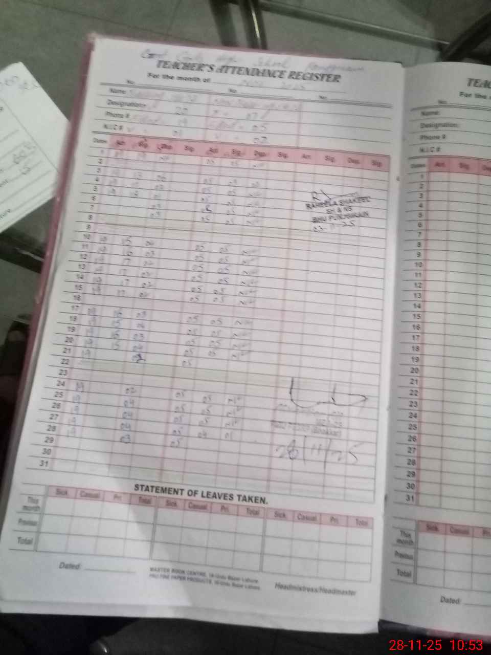 | Name: SA**** NI**** Designation: (School Headmaster's/Headmistress's) HM Phone/Cell Number: 03**** |