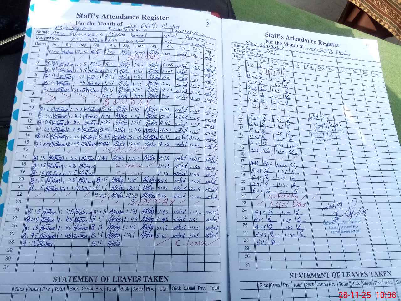 | Name: AZ**** FA**** Designation: (School Headmaster's/Headmistress's) PST Phone/Cell Number: 03**** |