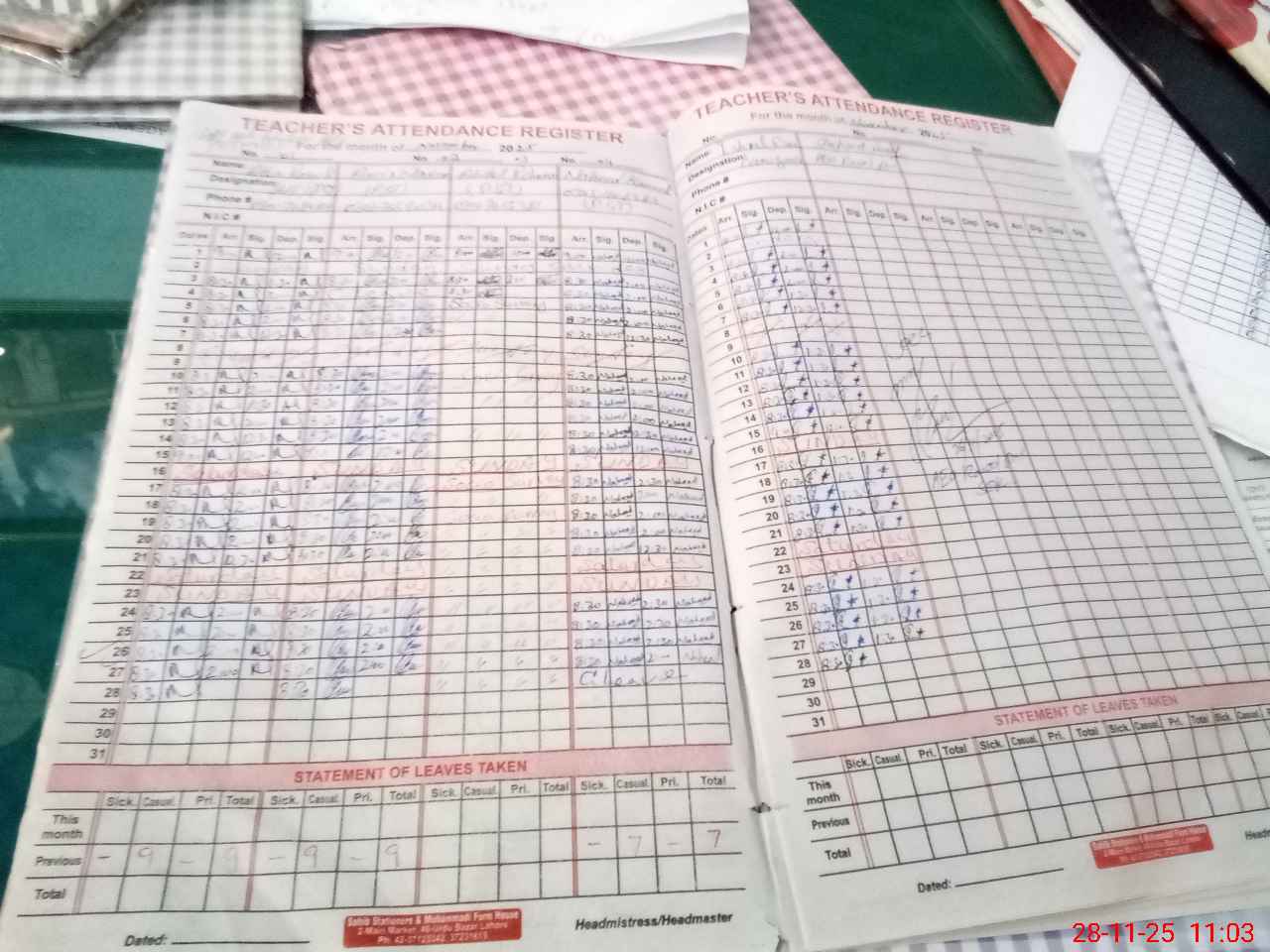| CNIC | Full Name | Designation | R/C | Absence During Last Calender Month |