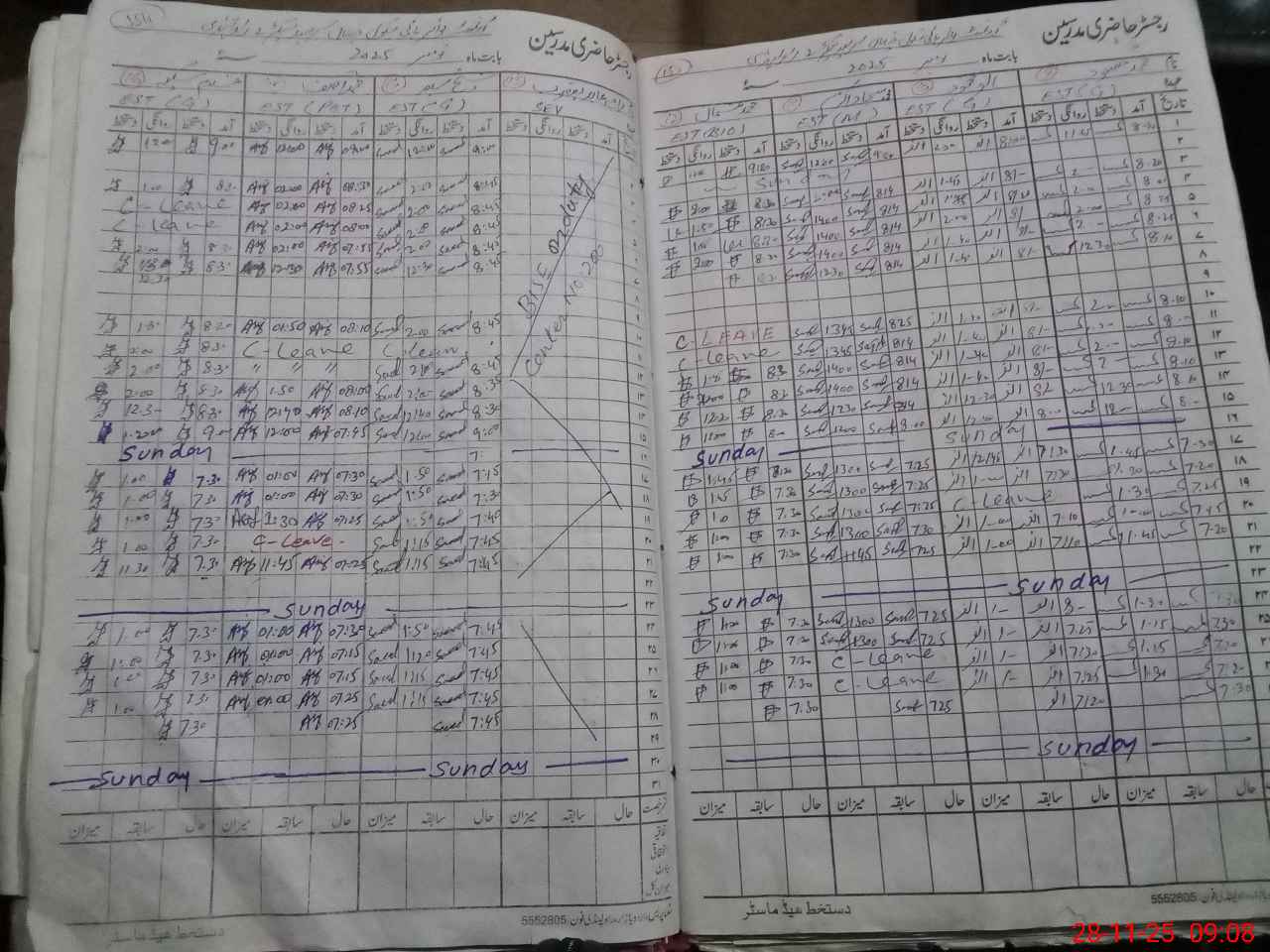 | CNIC | Full Name | Designation | R/C | Absence During Last Calender Month |