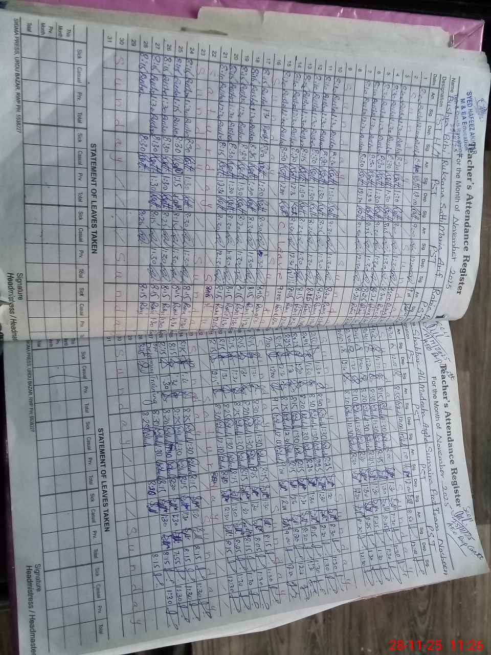 | Monitoring Date: 28-11-2025 | Start Time: 28-11-2025 10:54 AM | End Time: 28-11-2025 11:33 AM | Name of MEA: Sy**** Ha**** Ak**** | |