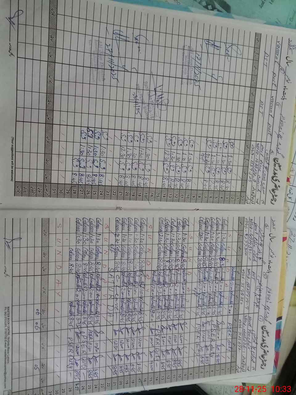 | CNIC | Full Name | Designation | R/C | Absence During Last Calender Month |