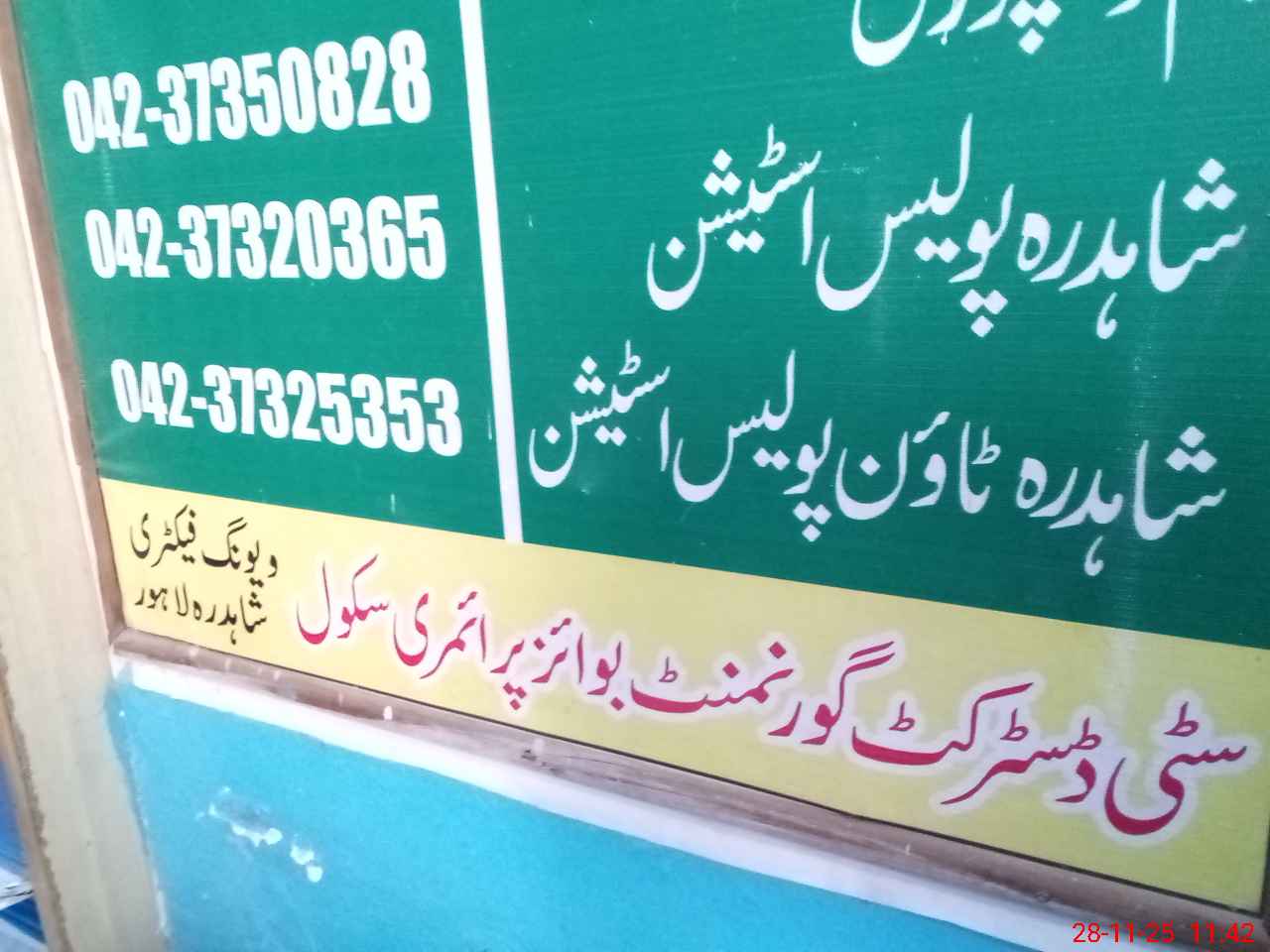 | District: LAHORE | Tehsil: CITY | Markaz: SHAHDRA - MALE | Level: Primary | |