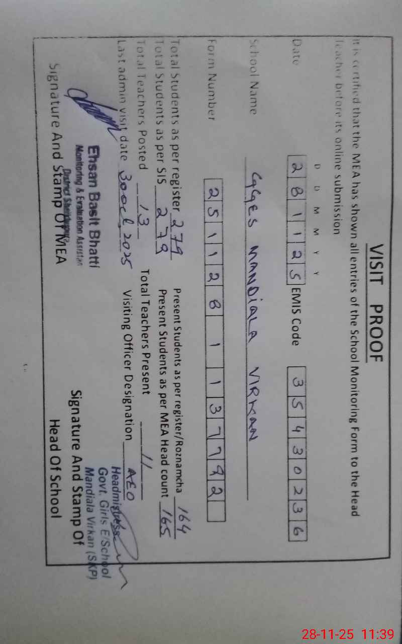 | EMIS Code: 35430236 | Name of School: GGES MANDIALA VIRKAN | |||