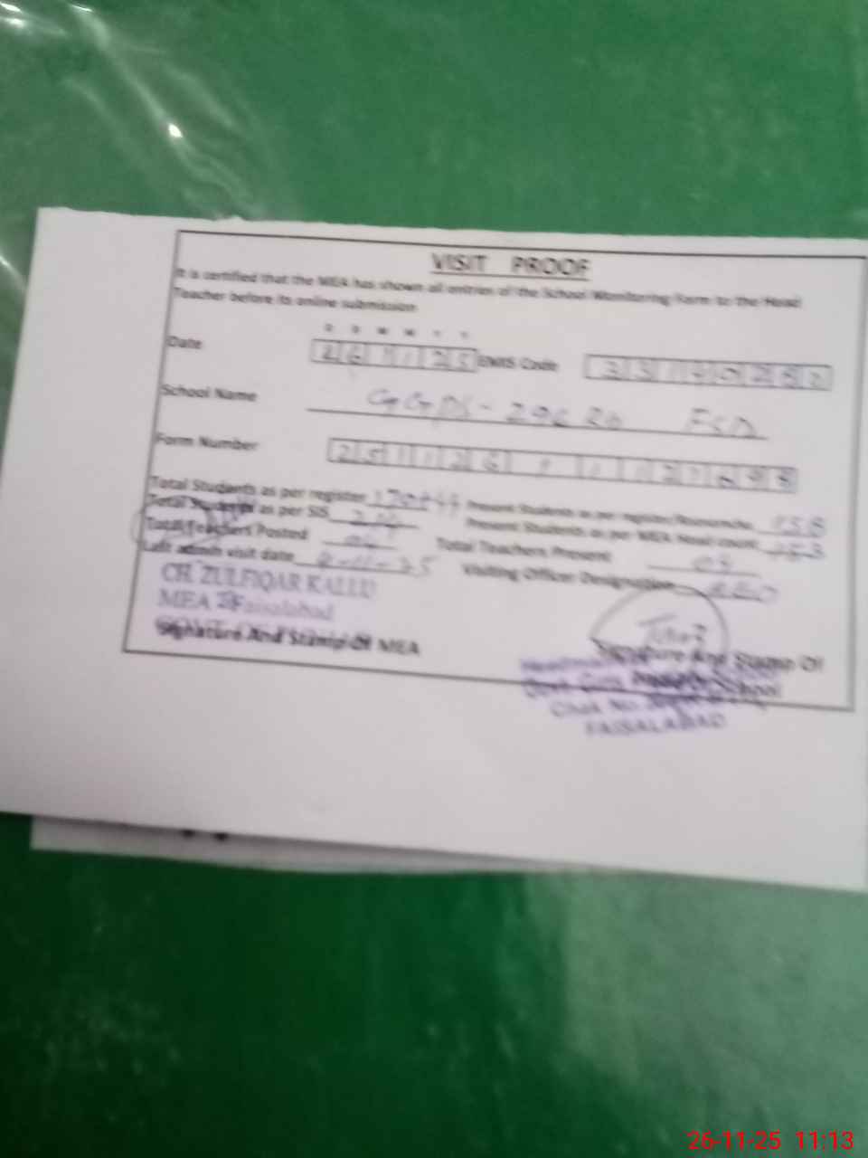 | Attendance Register | Head Teacher | MEA with School | Visit Proof |