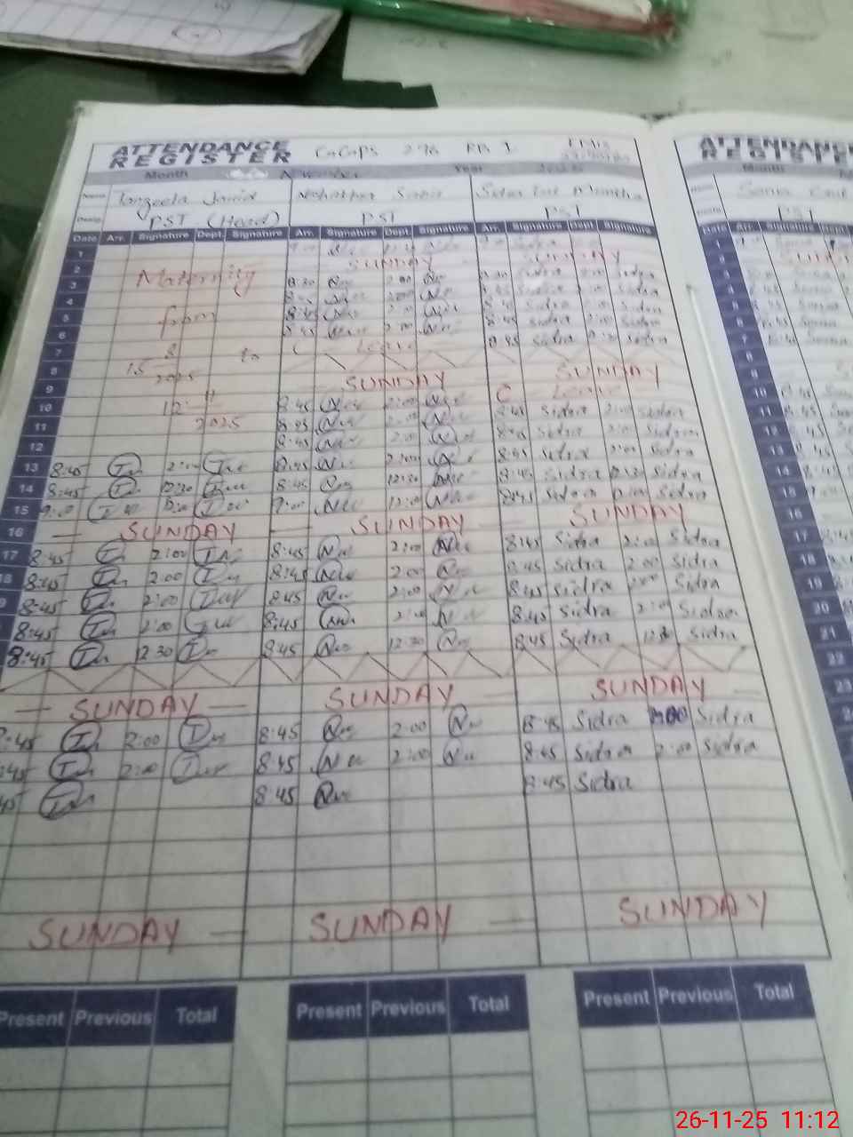 | Leave | Duty | Absent | Maternity | Medical | Ex- Pak |