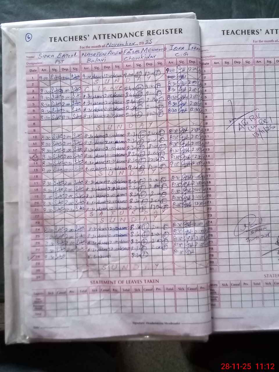 | CNIC | Full Name | Designation | R/C | Absence During Last Calender Month |