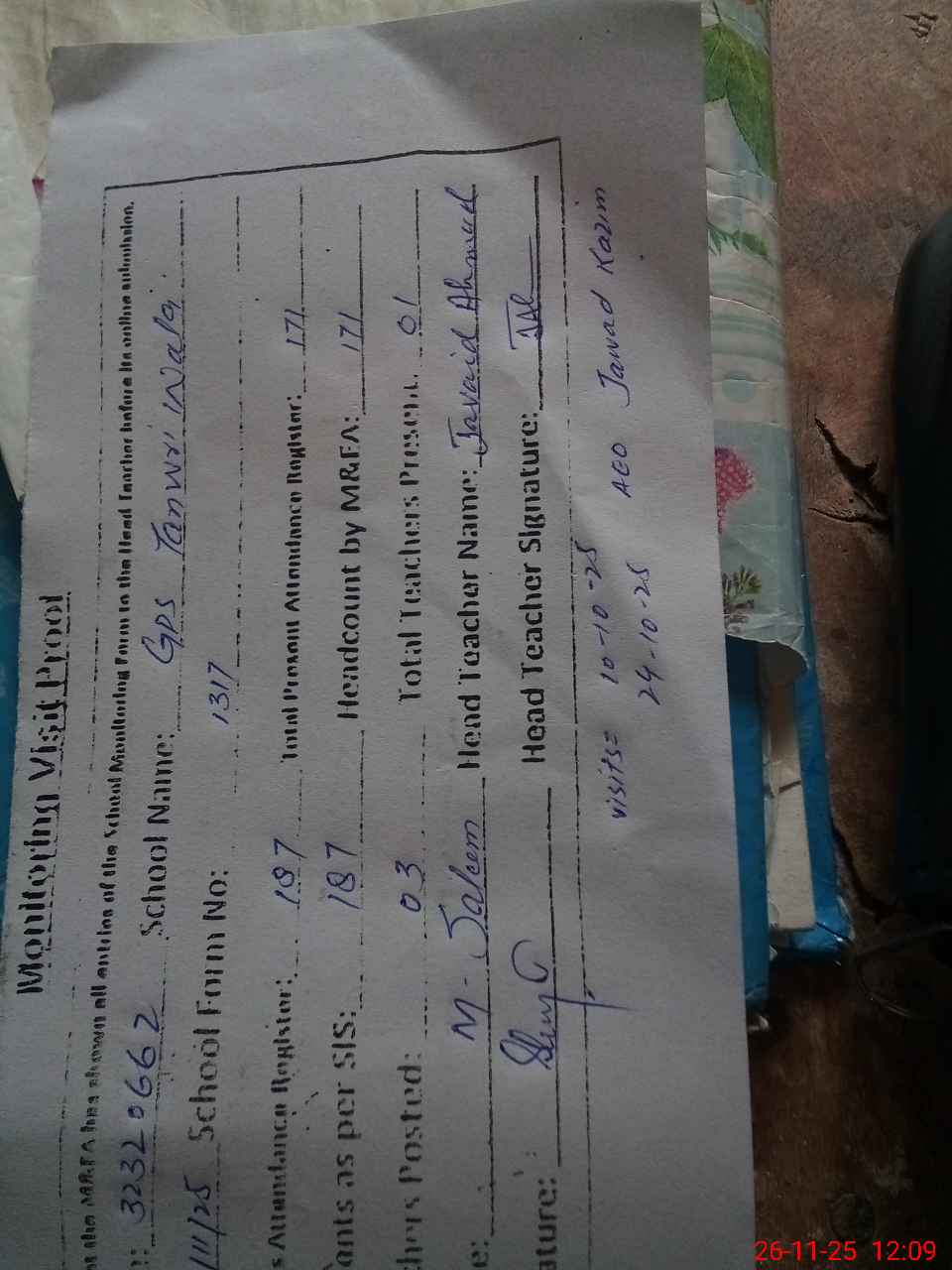 | EMIS Code: 32320662 | Name of School: GPS TANWRI WALA | |||
