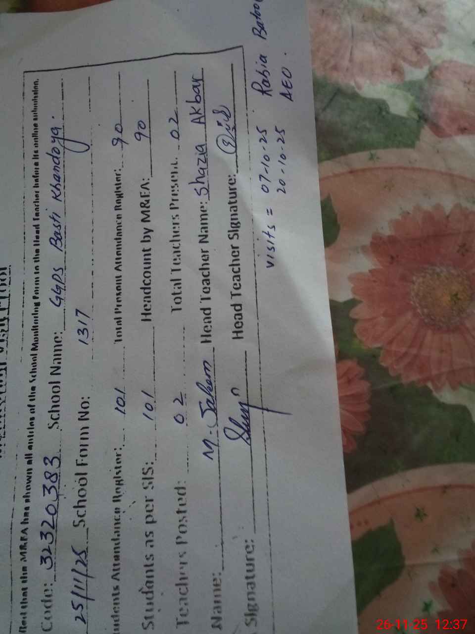 | EMIS Code: 32320383 | Name of School: GGPS BASTI KHANDOYA | |||